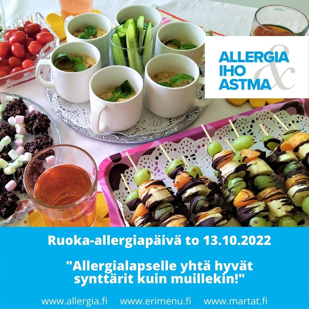 Järjestämme ma 24.10.2022 allergialeivontaillan teemalla Allergialapselle yhtä hyvät synttärit kuin muillakin! Synttärileivontaillan aikana aikuinen ja lapsi valmistavat kunkin allergiaruokavalioon sopivia synttäriherkkuja valmiista resepteistä. Ilmoittautuessasi voit myös ehdottaa jotain valmistettavaa tai kertoa oman herkkureseptisi muillekin jaettavaksi. Iltaa ohjaa kokenut kotitalousopettaja.
